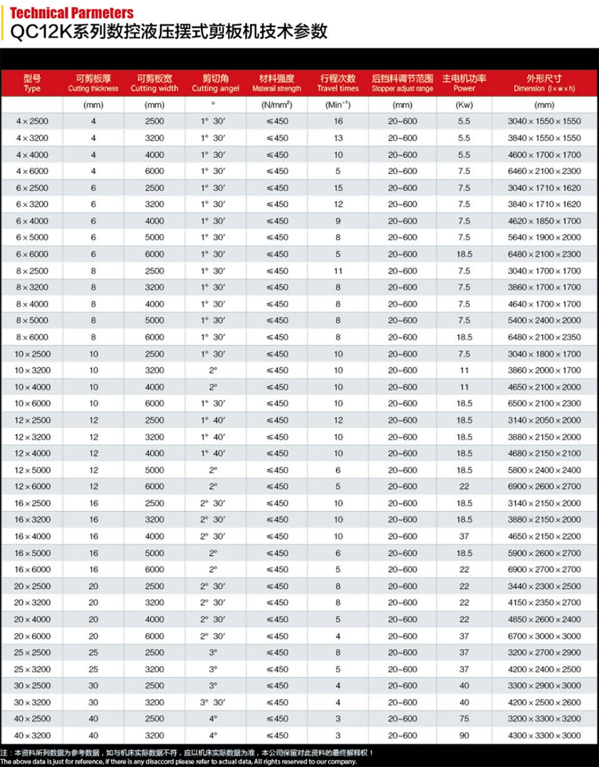 Application: Suitable for shipbuilding, metallurgy, construction and other industries, for shearing plates with a thickness of 4-40mm and a width of 2500-6000mm.
