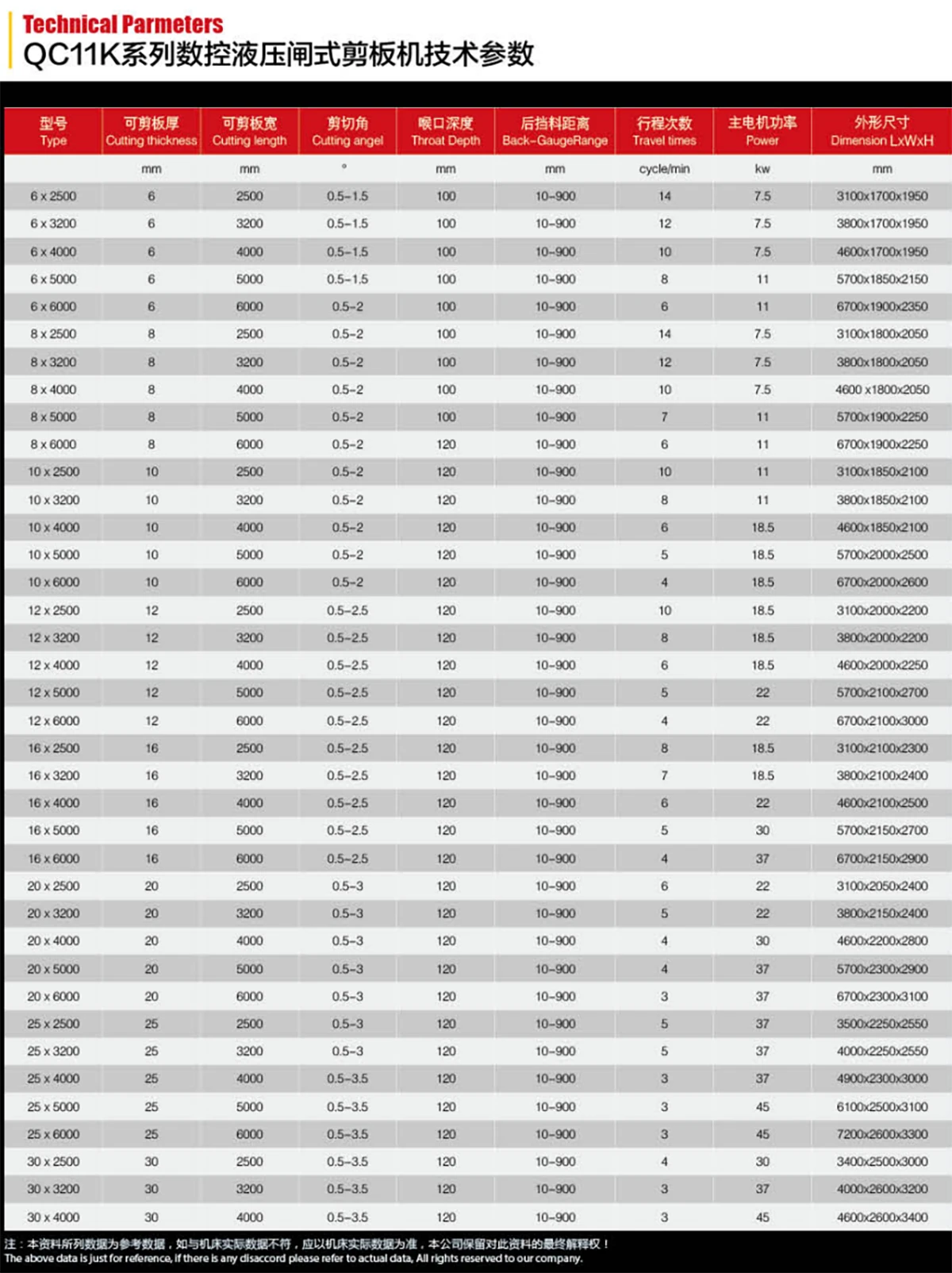 Features: Shearing angle range of 0.5-3.5°, throat depth of 100-120mm, suitable for plates of different thicknesses (6-30mm); adjustable back gauge distance (10-900mm), supports continuous shearing, and main motor power of 7.5-45kW to meet the needs of processing of different scales; the whole machine has strong rigidity, and the shearing process is stable without obvious deformation.